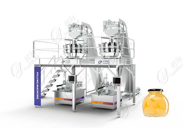 罐裝的時候,同一個罐子選用果肉大小一致、色澤、成熟度大致均勻的果肉。梨球、梨塊可選用多頭稱自動固型物裝罐機(jī)裝罐、梨丁可選用丁料裝罐機(jī)裝罐。