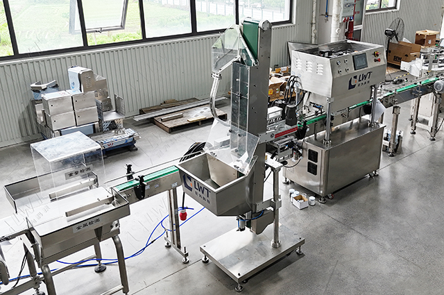 主要功能為自動上料、伺服螺杯自動計量、自動灌裝、自動注油、自動輸送等功能。