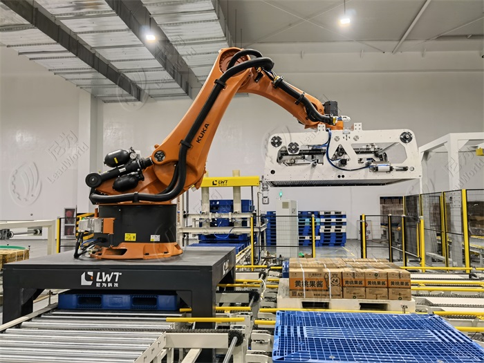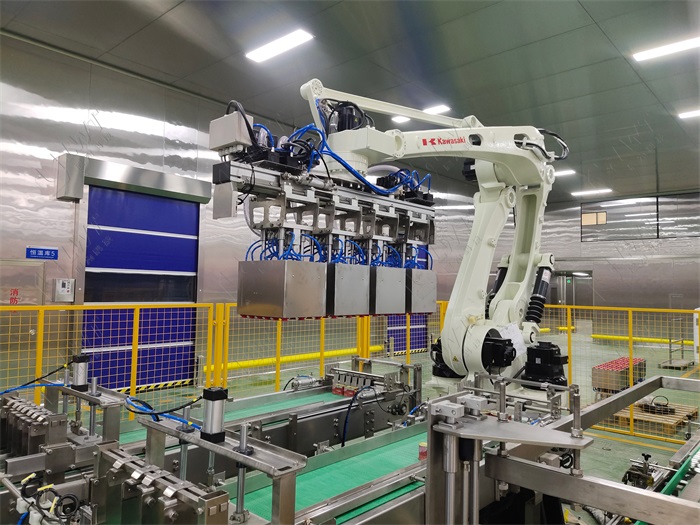 機器人碼垛機是機電一體化高新技術產品??砂凑找蟮木幗M方式和層數,完成對料袋、膠塊、箱體等各種產品的碼垛。